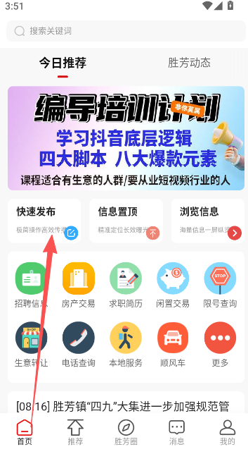 2、设有胜芳圈社交功能,支持文字、图片、视频分享生活动态。