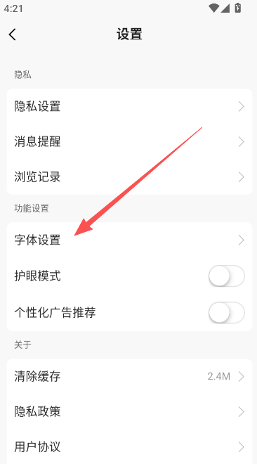 1、胜芳大杂烩字体大小需要在设置界面进行操作。