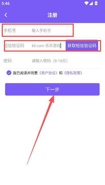 3、输入本人所使用的手机号码,填写短信验证完成新用户注册的操作。