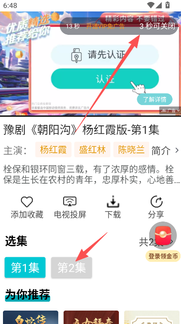 3、付费的戏剧部分,需要观看开屏广告,另外完整的戏曲剧集部分,也只能够看1集,不能够看完整。