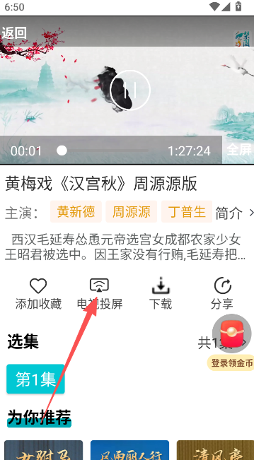 1、梨园行戏曲app播放戏曲,自带电视投屏播放功能。