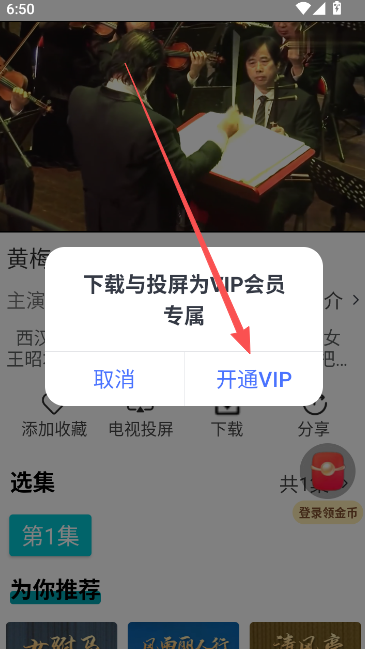 2、投屏播放与下载功能是VIP付费专享的,建议用户先注册开通VIP会员账户,之后再进行投屏操作。