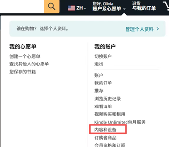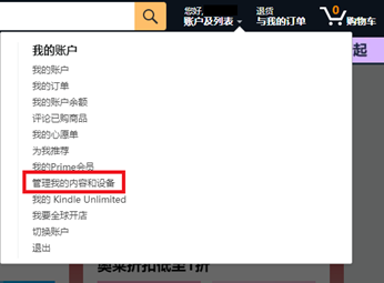 1.进入官网,登录你的亚马逊中国账号,点击“管理我的内容和设备”。