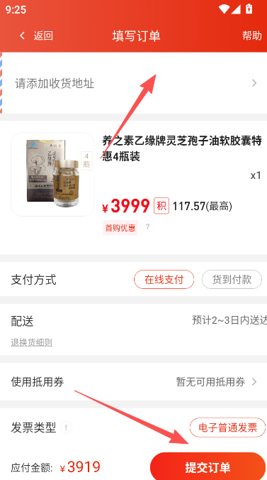 7、填写收获地址,提交订单并支付,等待商品配送到家。
