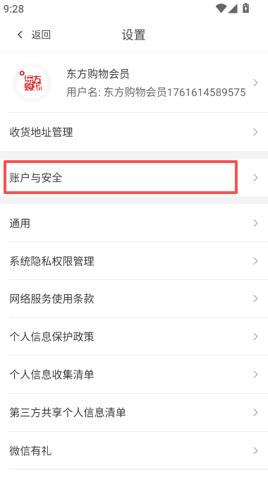 2、选择账号与安全管理项。