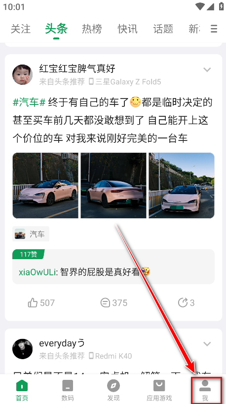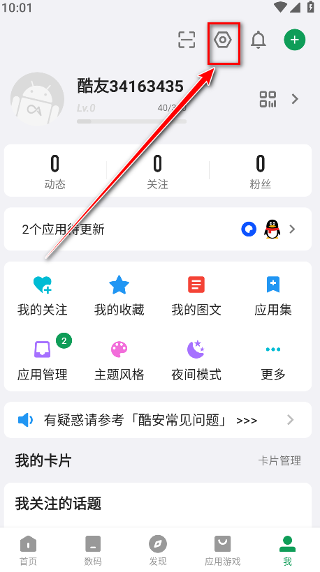 打开酷安APP,点击右下角 “我” 进入个人中心。
