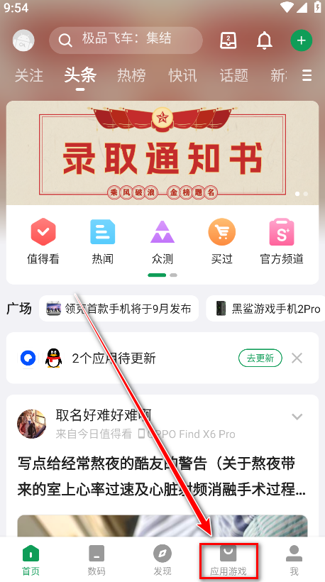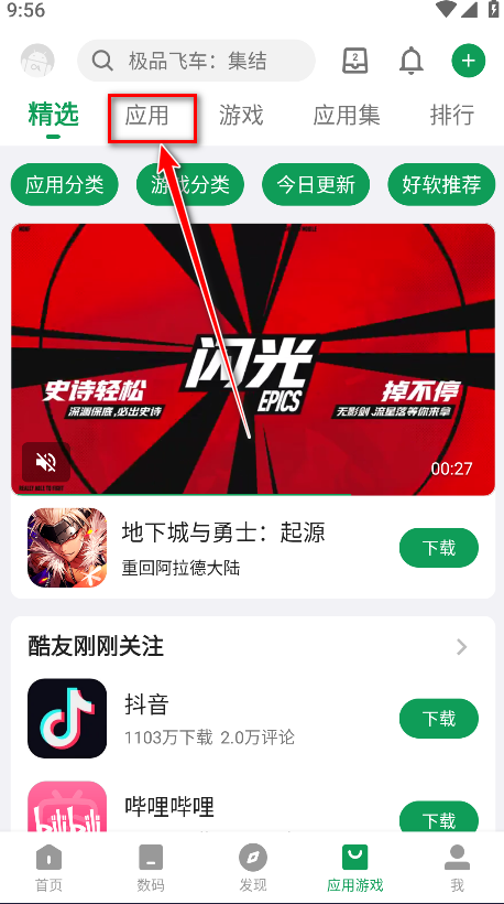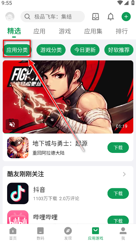 1.打开酷安,点击应用游戏。