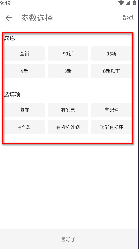 5.选择参数。