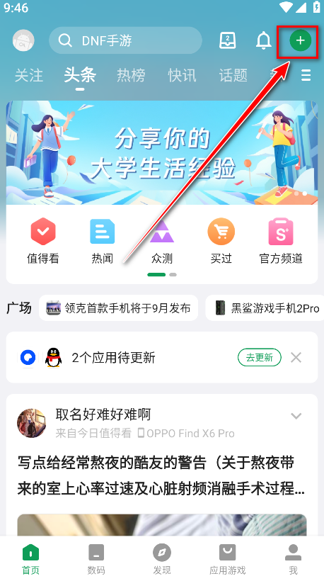 1.打开酷安,点击右上角的加号。