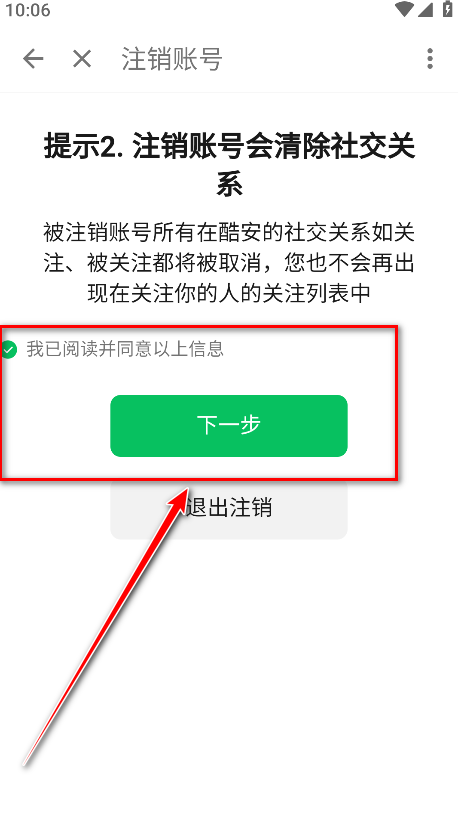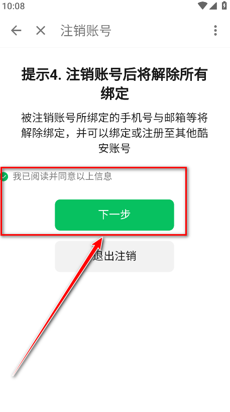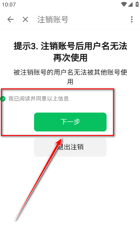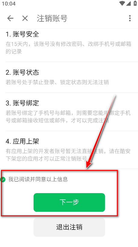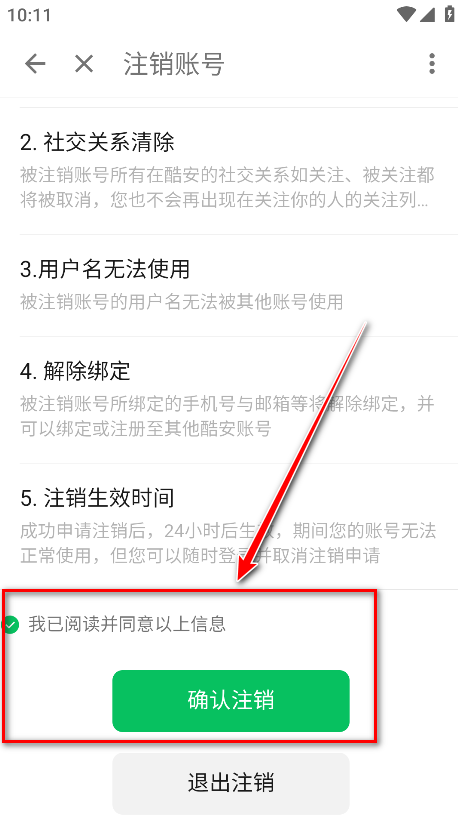 13.勾选我已阅读并同意以上信息,点击确认注销。