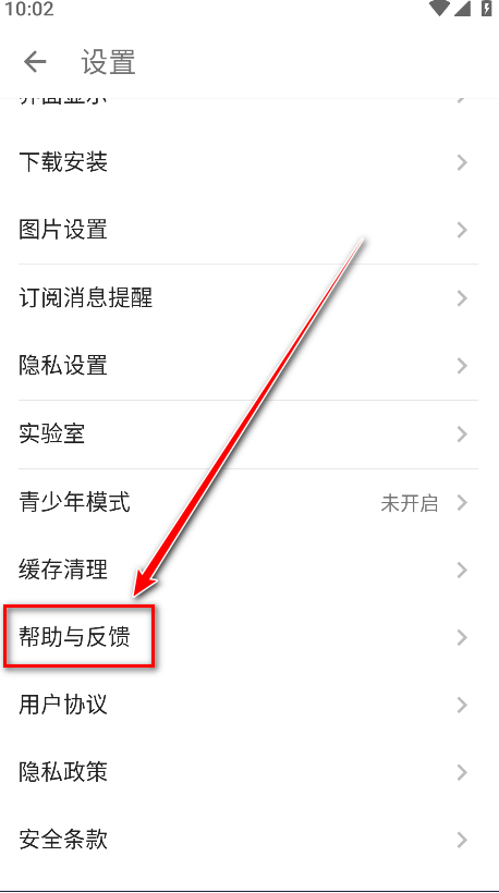 3.点击帮助与反馈。