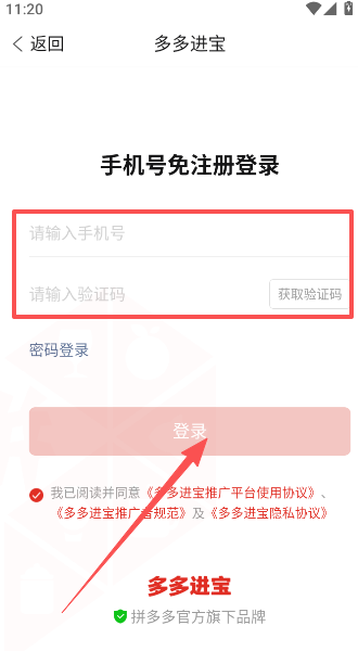 下载并安装多多进宝APP,用手机号注册登录,完成实名认证并绑定银行卡,以便后续提现佣金。