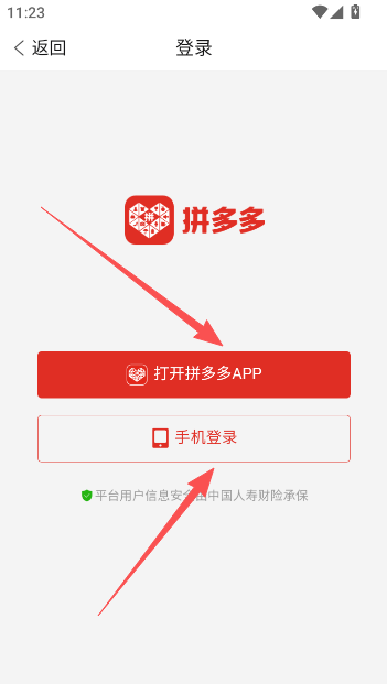 4、打开已安装的拼多多app或是选择手机号验证的方式登录绑定。