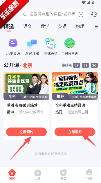 1、登录app后点击“上课”-点击课程-点击课节-进入教室;