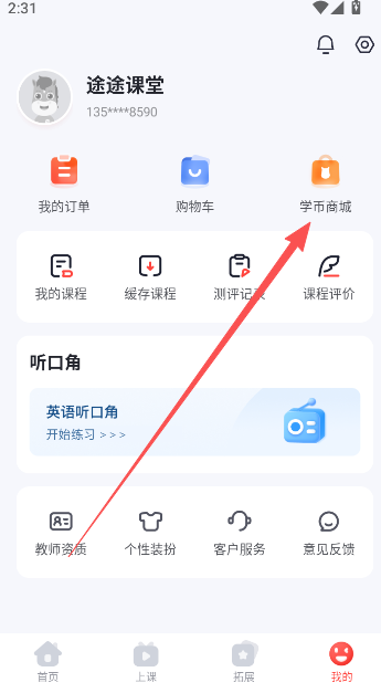1、途途课堂学币的使用,有专门的学币商城栏目,可在个人主页点击进入学币商城。