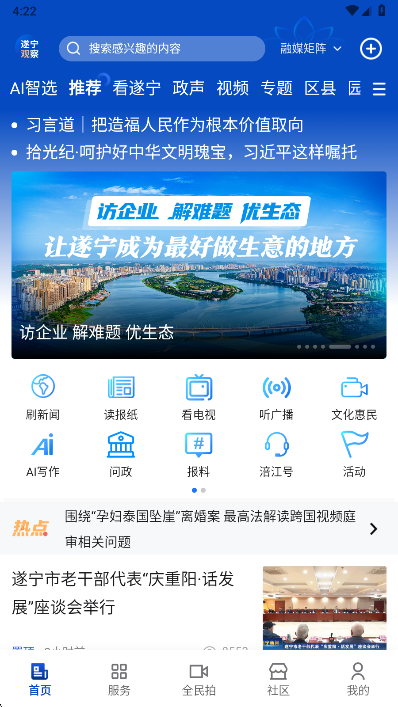 1、在本站下载安装进入到首页,可以浏览到遂宁观察app的基础功能