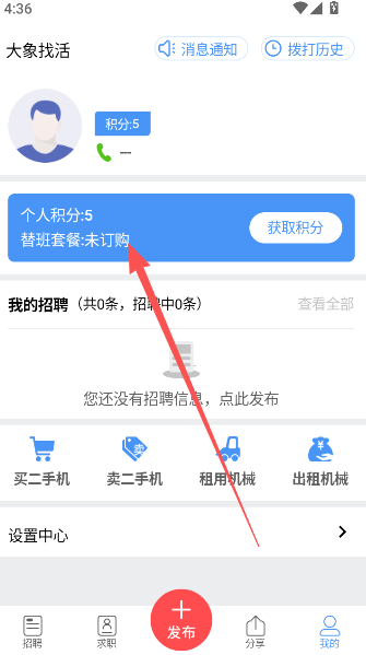 2、登录验证完毕以后,找到我的页面,选择个人积分页的获取积分。