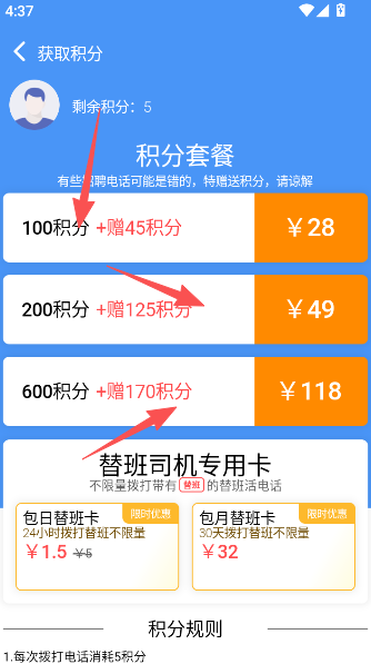 3、选择套餐,支付相应费用完成积分的获取购买。