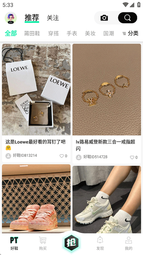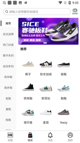1、下载莆田好鞋APP注册登录,在软件首页有各种好物推荐,莆田好鞋怎么用点击购买,这里将所有商品都进行了分类,用户可以在这里搜索到自己想买的商品;