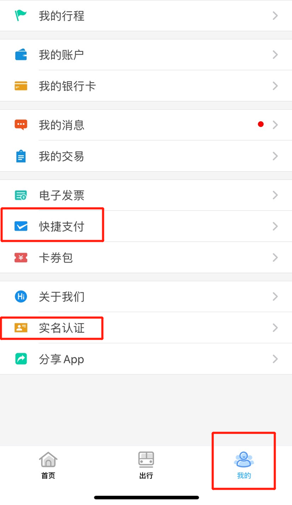 3、也可以绑定支付宝、微信支付:点击主页下部“我的”,点击打开“快捷支付”,根据提示开通优先支付的帐户。