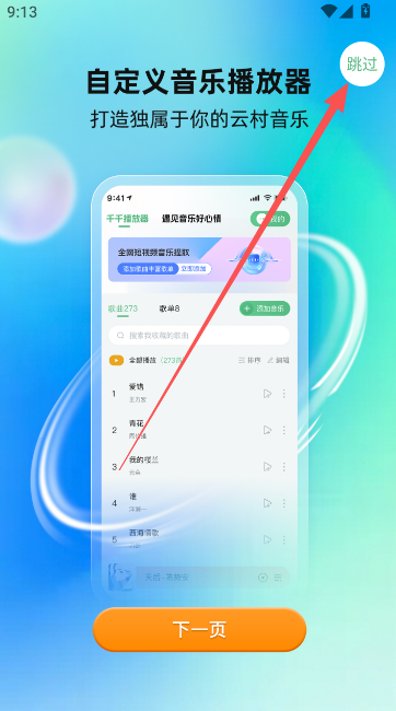 1、简单查看开屏功能介绍部分,点击跳过进入首页。