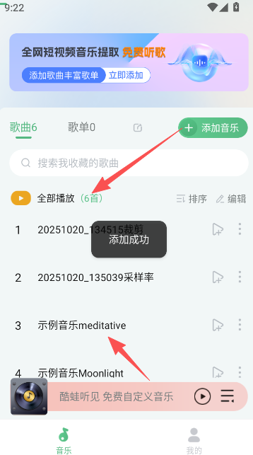 4、添加完毕以后,在首页歌曲界面可以看到全部内容。