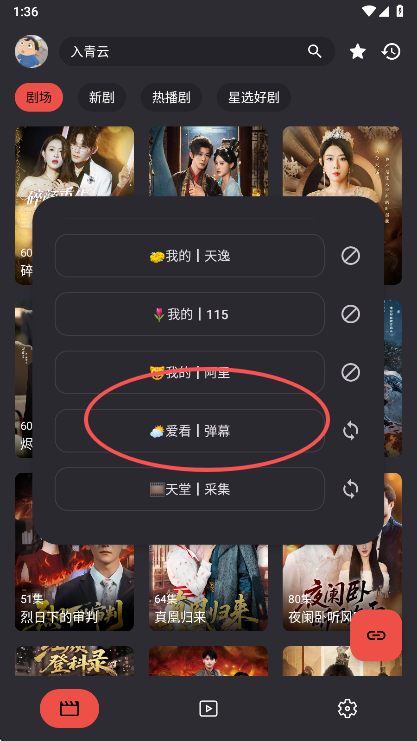 2、然后点击左上角的头像选择播放源,这里推荐大家使用爱看这个播放源