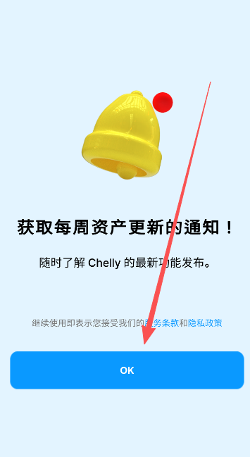 1、确认获取Chelly应用最新通知,并了解完整的软件使用服务条款和隐私政策。