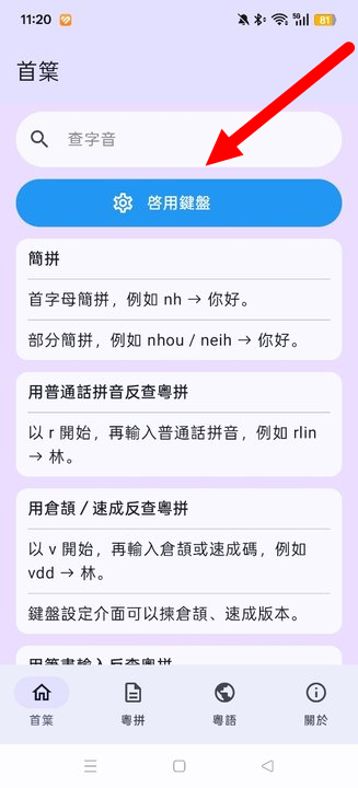 到系统设定App开启「允许全权取用」权限给键盘后。