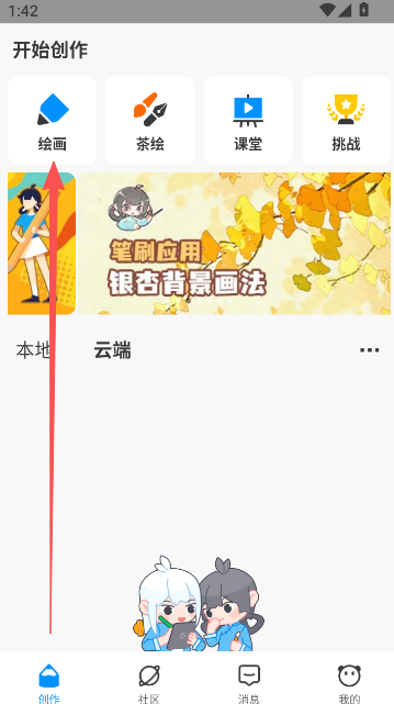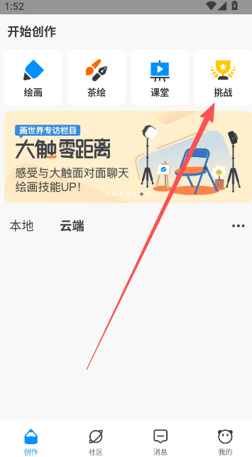 1、熊猫绘画软件上色,需要用的是软件挑战功能版块。