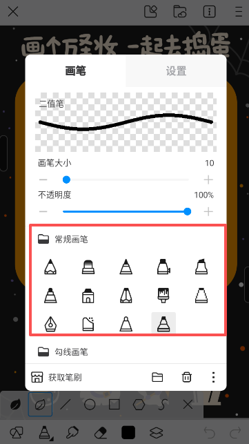 我们提供了12种内置画笔供您使用,例如铅笔,用于勾线的圆珠笔和用于着色的水彩笔。每个画笔都有多种设置参数,因此可以根据自己的喜好对其进行自定义。我们还提供了多种笔刷形状与纹理,可以根据自己的需求创造自己的笔刷。将来我们会增加更多的笔刷,所以请多加注意!
