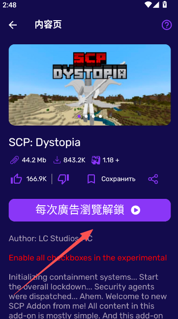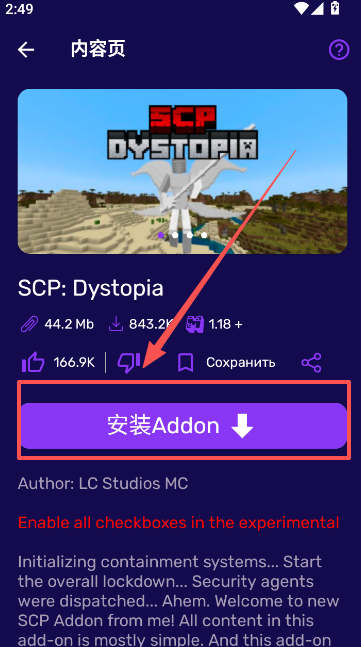 7、获得下载资格后,点击安装Addon,之后导入你的游戏世界中,单人或是选择与其他玩家们一起在线玩。