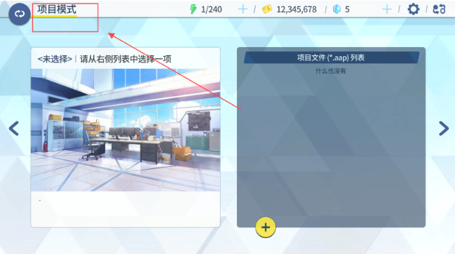 5、然后在项目模式的情景下点击+,创建一个项目名称