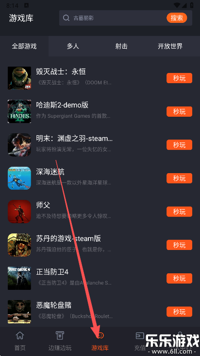 3、如果您想要找游戏的话可以来到游戏库,根据分类查看
