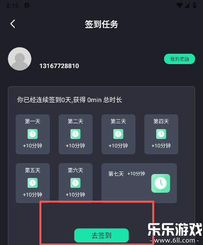 2、然后进入到签到页面签到可以看到免费时长领取了