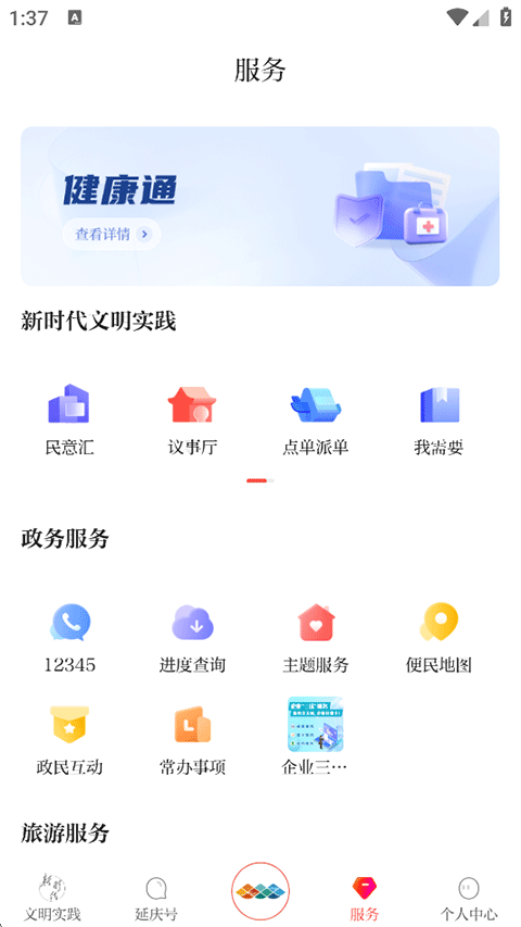 4、服务:涵盖文明实践、政务、旅游各种生活工具;