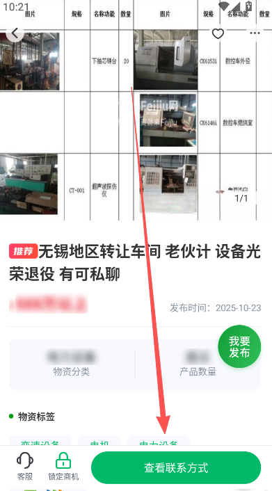 2、商品的详情界面,有货源物品的联系方式,可点击查看。