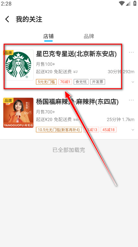 2.点击我们想要的店铺。