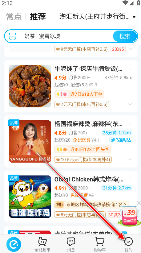 1.在首页上方搜索框输入我们想要的店铺名字。