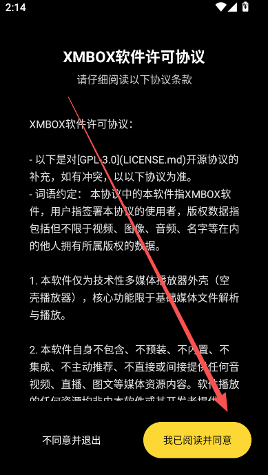 1、阅读软件用协议部分,点击进入软件内部。