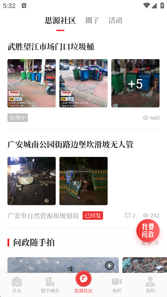 3、“互动”栏目开放留言反馈、民意征集等功能,市民可在线参与城市管理与建设。