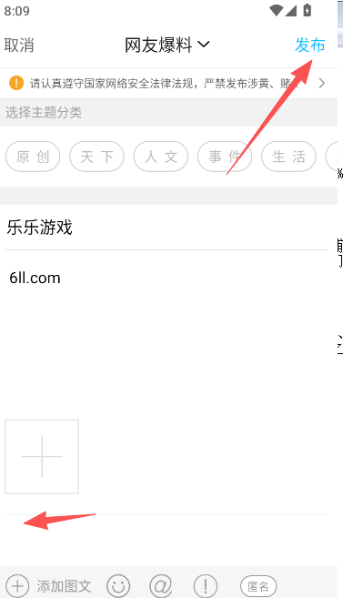 8、发帖处填写完整内容,添加图片或是其他附件文字,选择发布。