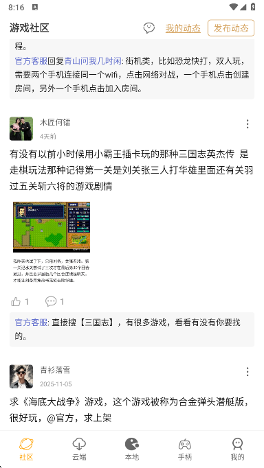 怀旧游戏馆,怀旧经典游戏时代回忆社区,聚集了来自五湖四海的怀旧游戏玩家,一同怀念并分享曾经童年的快乐趣事,畅谈自己曾经玩过的游戏有哪些~