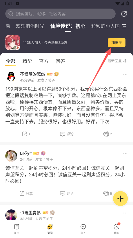 2、选择一款你想加入的圈子,点击右上角的进圈就可以了