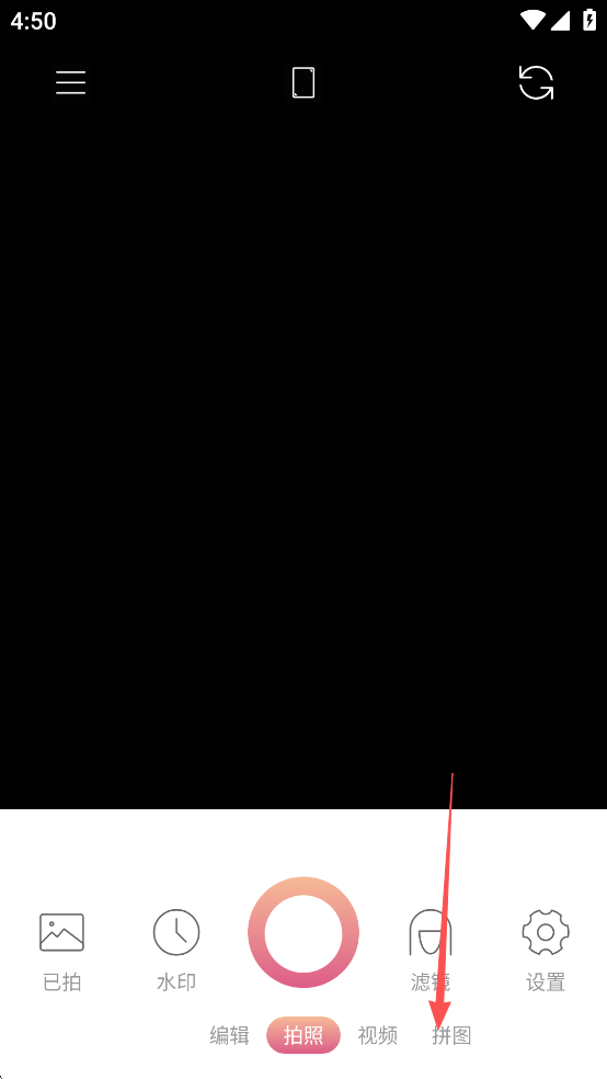 1、首先你需要在乐乐游戏网进行下载安装时间相机pro,然后打开相机,点击【拼图】