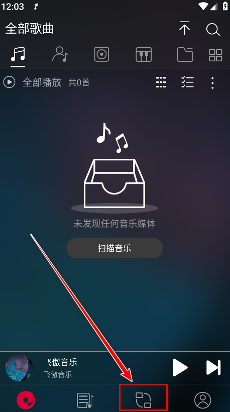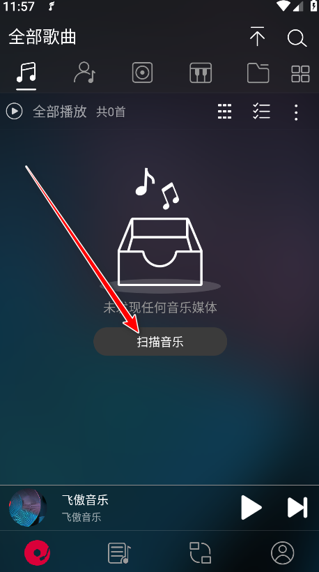1.打开飞傲音乐,点击扫描音乐。