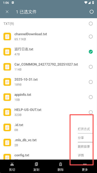 4、点击底部更多还可以选择打开方式、分享文档、查看文档详情以及跳转目录等