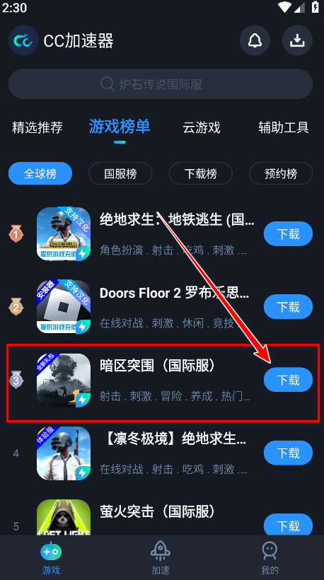 8.登录成功之后,再次点击自己想玩的游戏后面的下载。