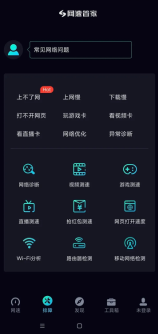 1、在网速管家极速版中,点击排障,有什么不明白的在此几乎都可以帮你解答疑惑