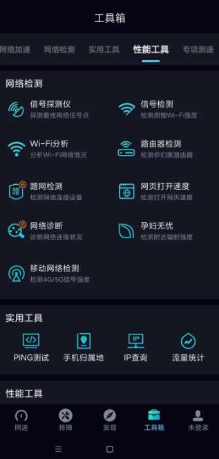 3、在性能工具这一板块中可以资源监控、极速手机清理和一键加速等功能